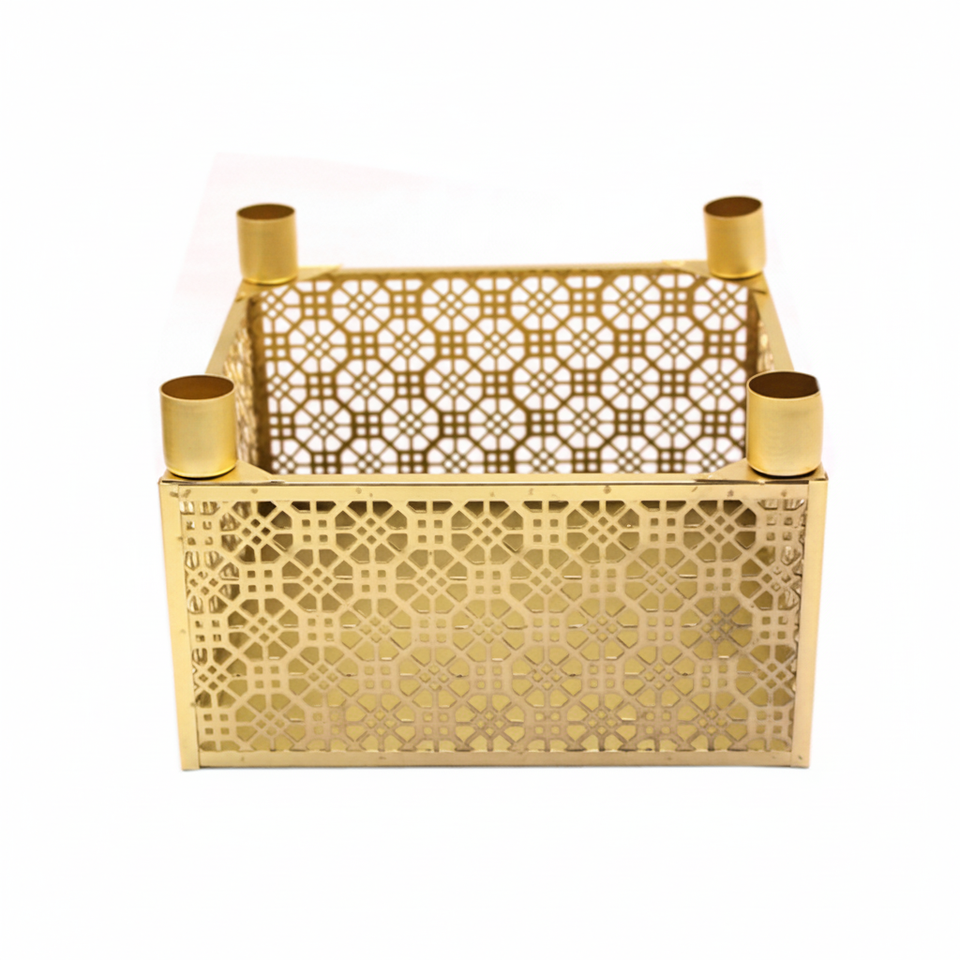 Portavelas de Adviento de Metal con diseño rectangular único, acabado dorado, hierro, hogar, fiesta de Navidad, iluminación, decoración, vela de Metal
