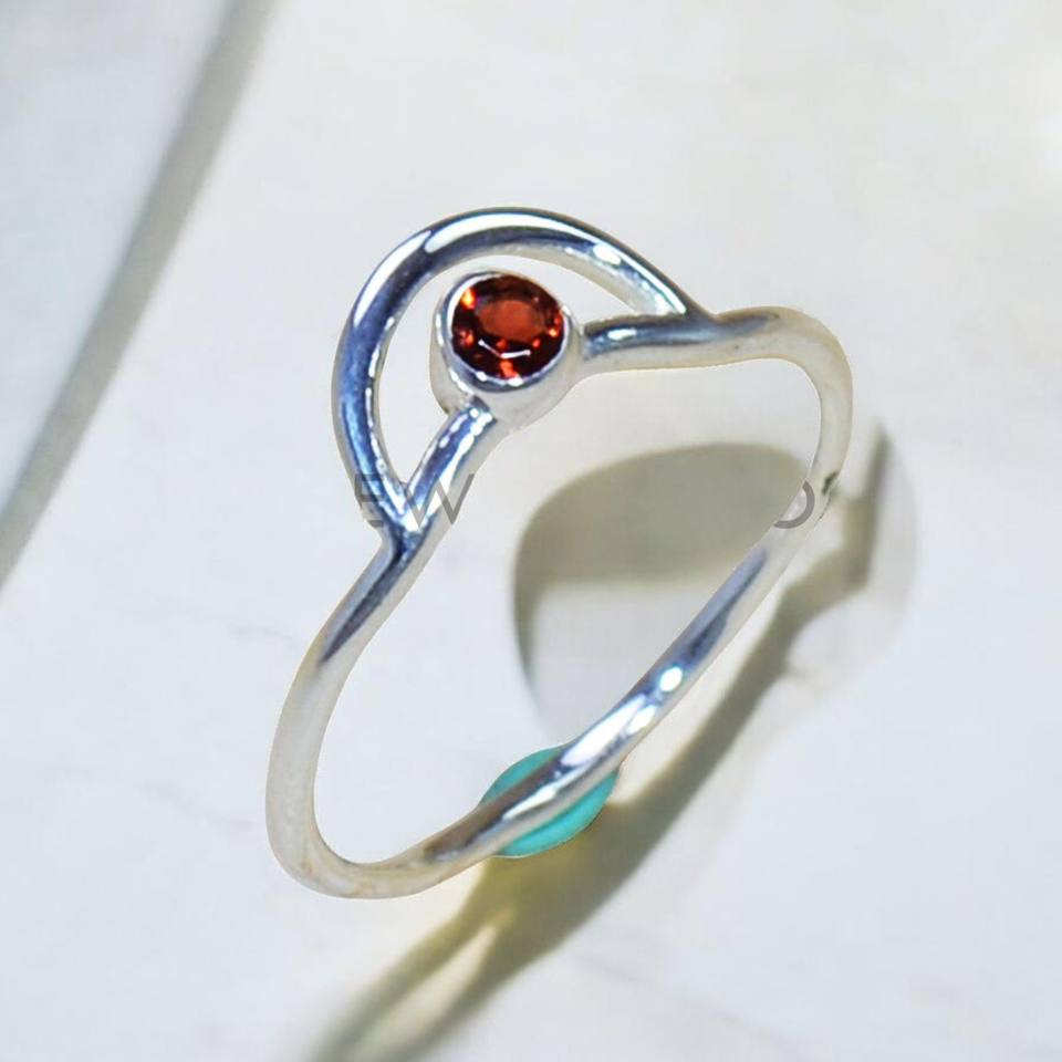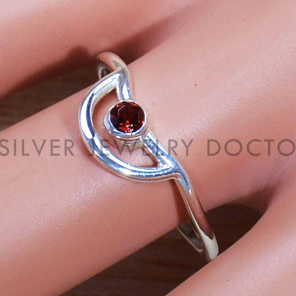 Anillos de compromiso de plata de ley 925 con granate de corte redondo único, hechos a mano, con piedra de nacimiento, joyería fina, anillo semicircular para mujer