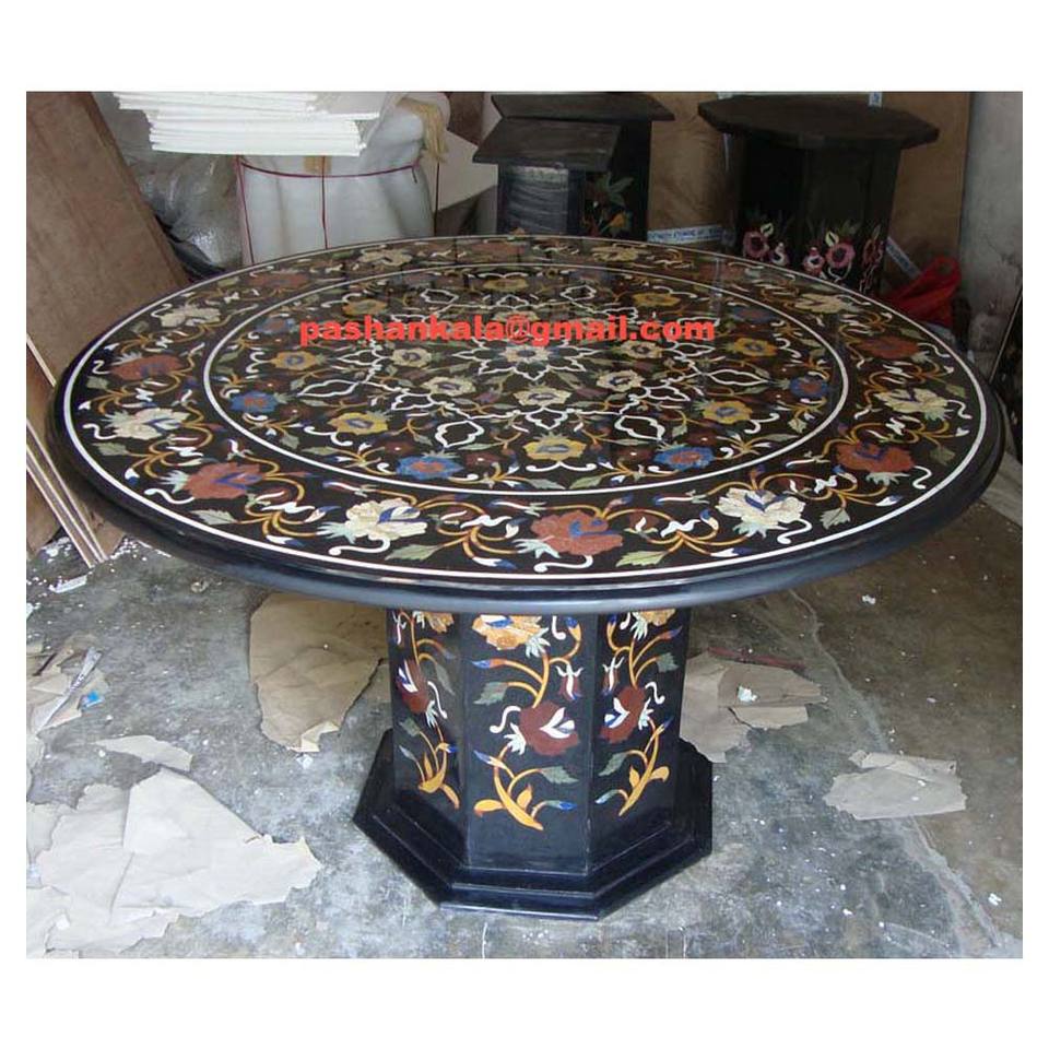 Base de Mesa Redonda Única con Incrustaciones de Mármol Negro - Mayorista Indio
