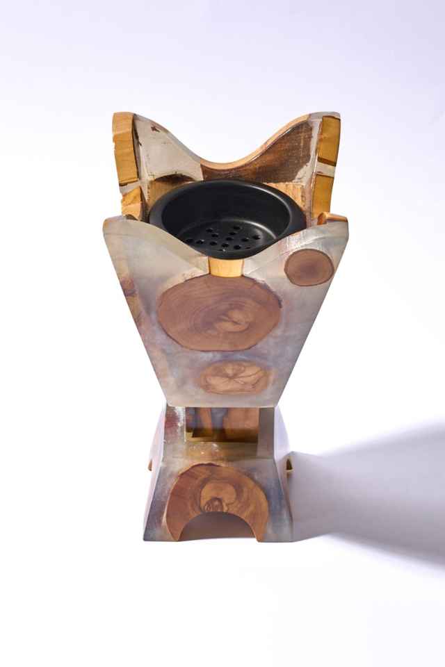 Quemador de madera rústica única y resina transparente, soporte Bakhoor árabe tradicional para exhibición de fragancia de habitación elegante