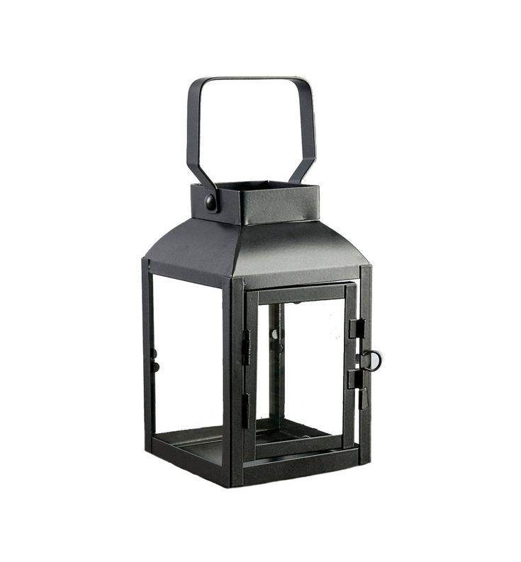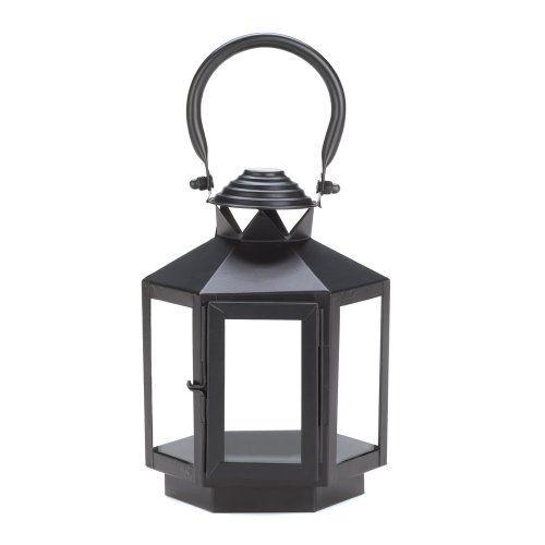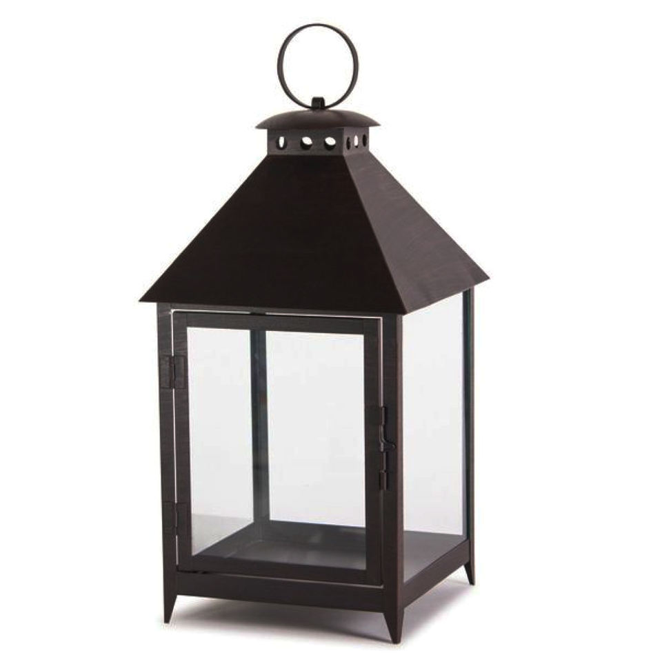 Farol de Metal y Vidrio Rústico de Venta Única, Acabado Negro Brillante, Hecho a Mano, Ecológico, Duradero, para Velas, para Exteriores