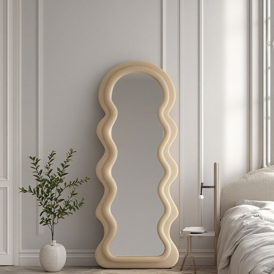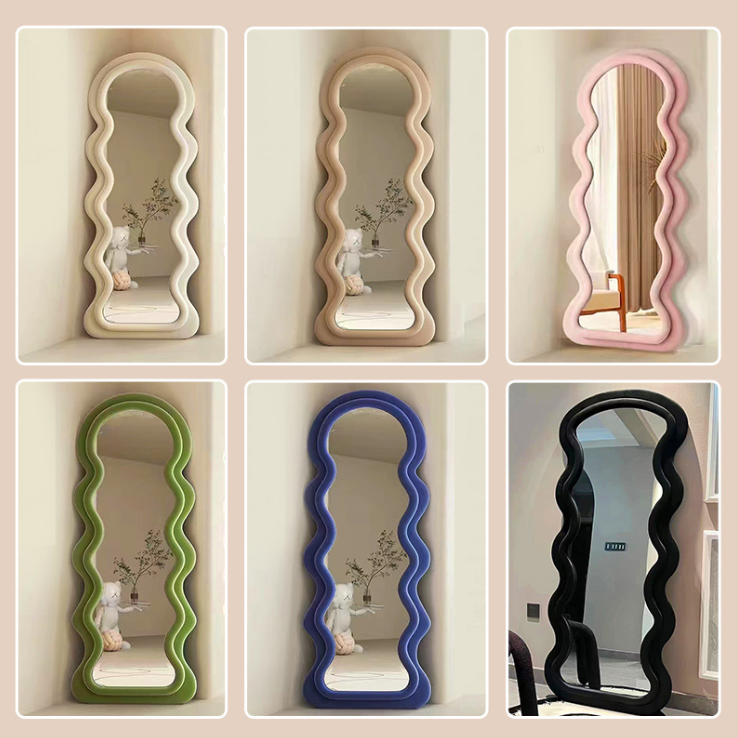 Espejo de piso de cuerpo entero con forma única grande con marco de franela para vestidor de dormitorio