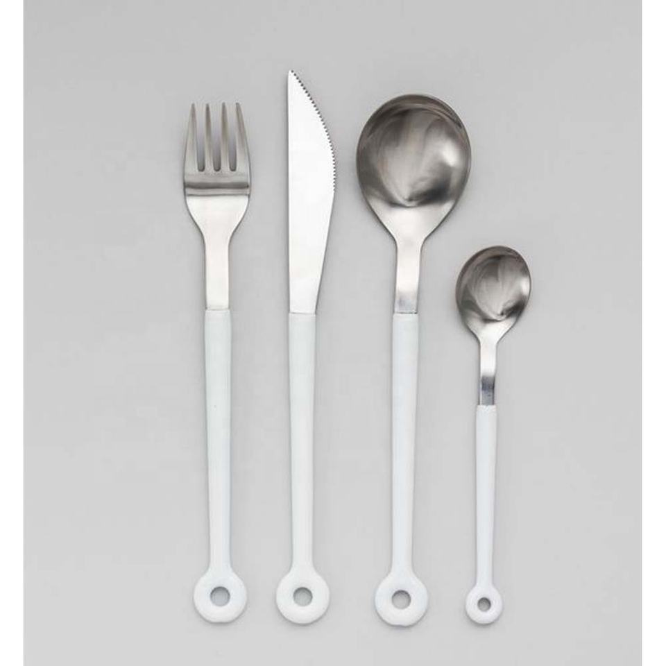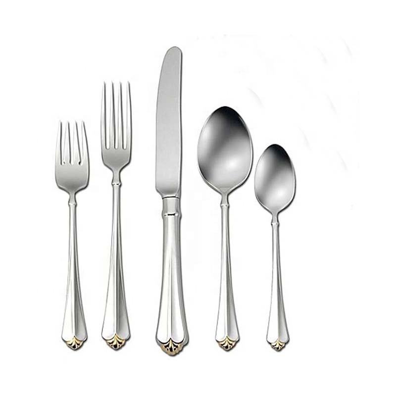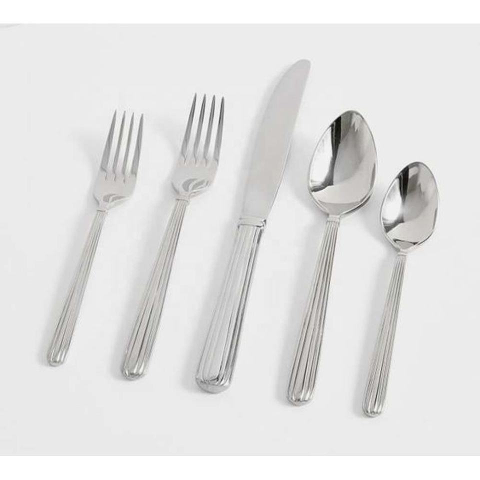 Único diseñador de acero inoxidable mango de aspecto plano nuevo increíble cuchara de acero inoxidable cuchillo tenedor juego de cubiertos