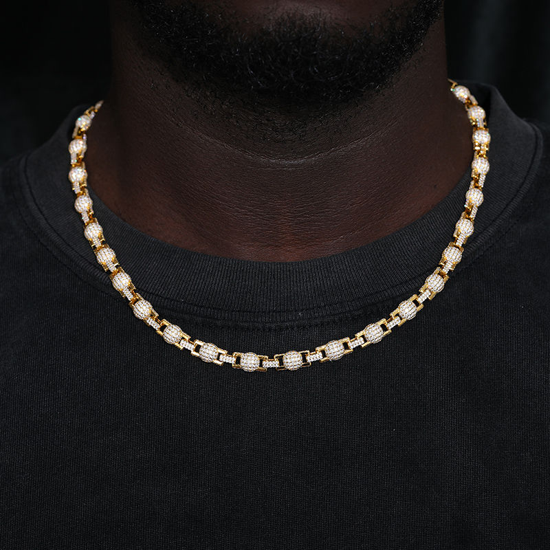 Collar único de estrella y Bola de lujo Iced Out Hip Hop 14kt oro blanco Lab Grown Diamond cadena cubana moda audaz para hombres