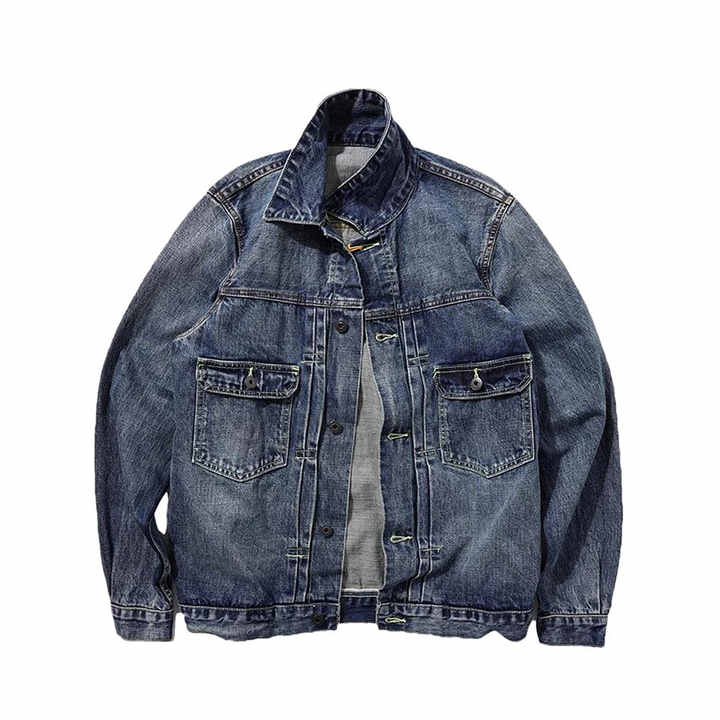 Chaqueta de Mezclilla Azul Estilo Piloto con Parche en el Cuello, Chaqueta de Mezclilla para Hombre, Abrigos de Motociclista, Ropa Casual