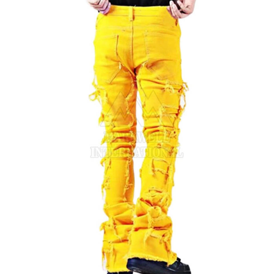 Pantalones apilados hechos a medida de estilo único a la venta, pantalones de hombre de diseño personalizado, pantalones apilados lavados