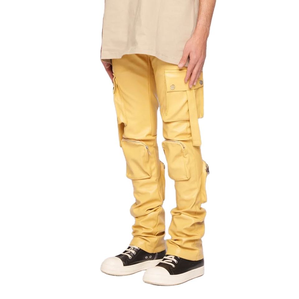 Pantalones de chándal de cuero apilados personalizados con diseño de estilo único precio barato pantalones de chándal apilados de cuero de la mejor calidad pantalones de hombre