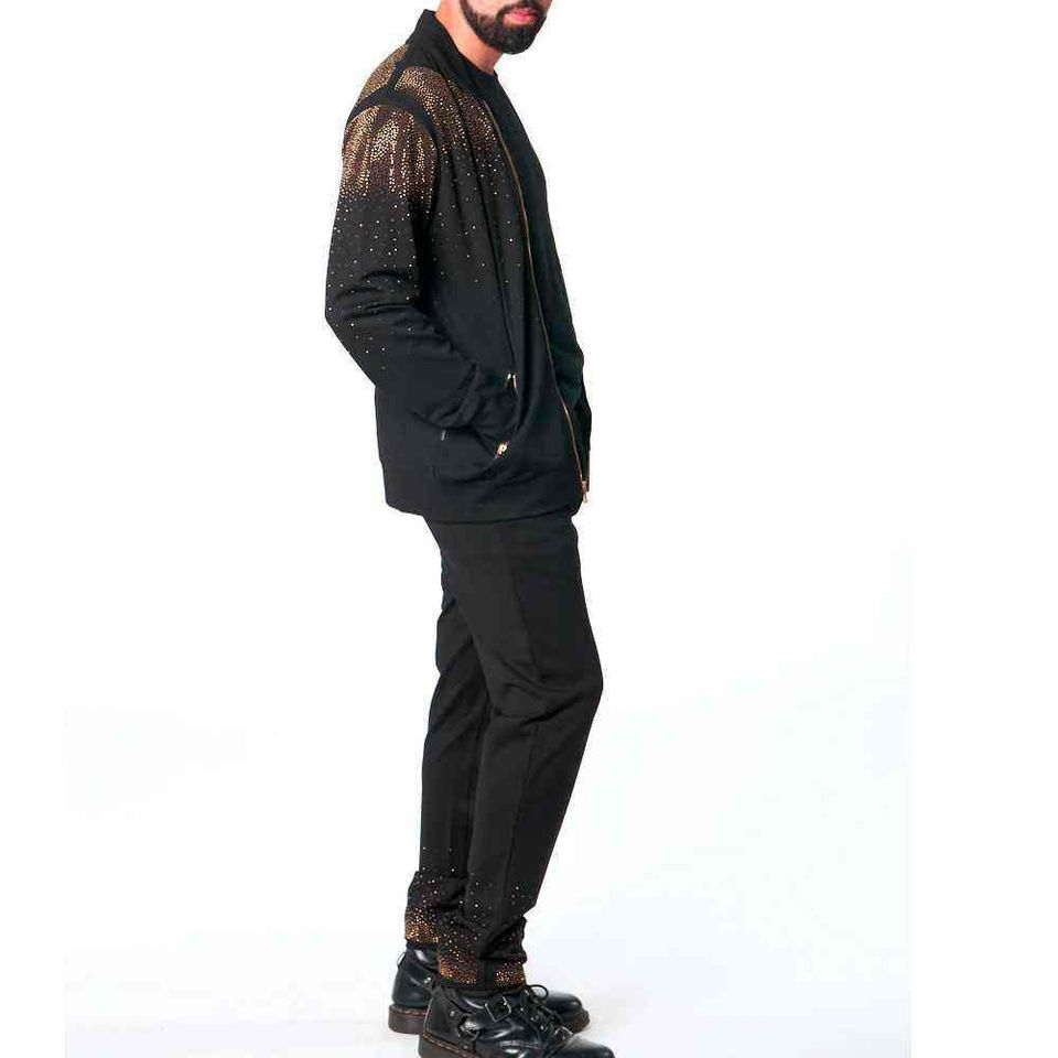 Conjunto Deportivo de 2 Piezas con Capucha, Estilo Único, Informal, con Múltiples Paneles, Abrigado para Invierno, para Correr, con Pedrería, para Logotipo Bordado Impreso
