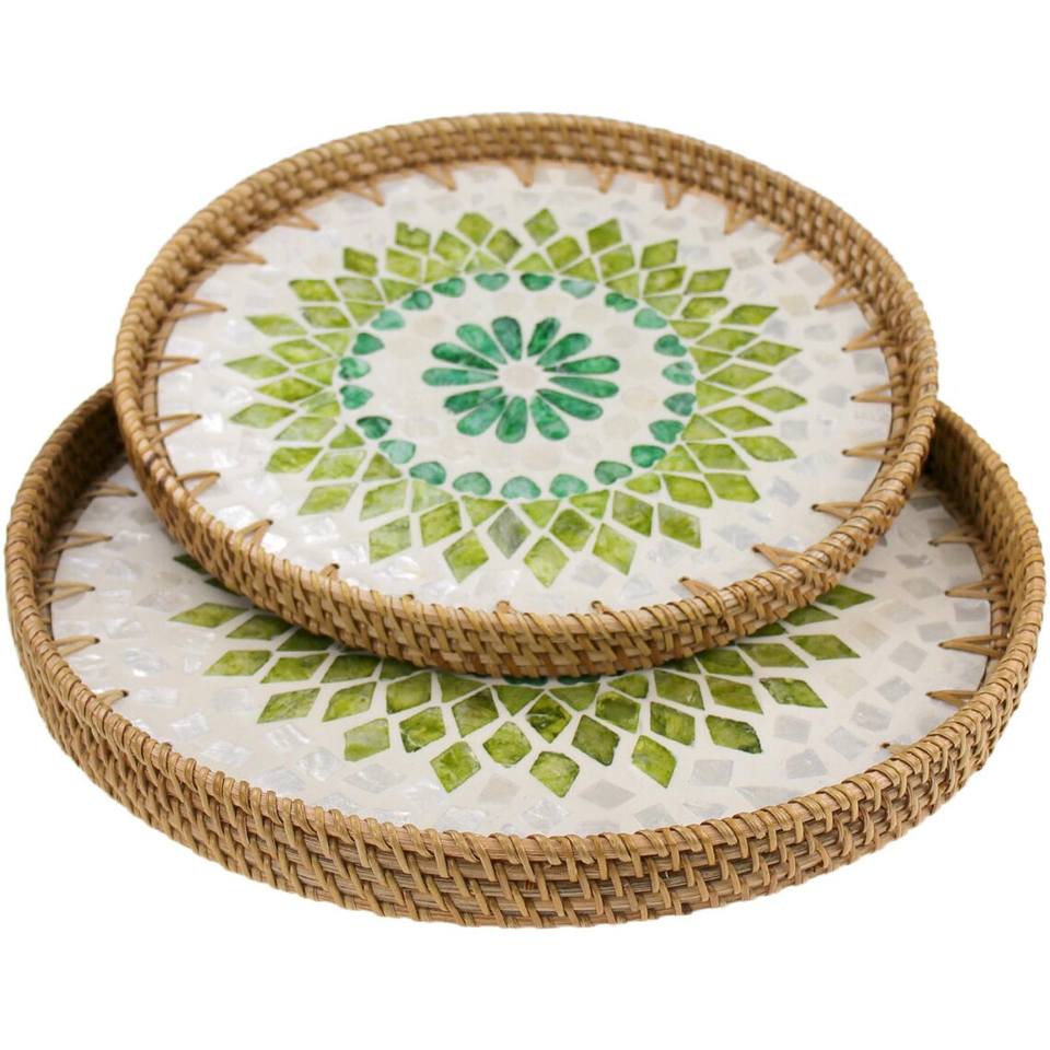 Bandeja de Servir de Madera de Ratán de Estilo Único con Acabado en Forma Redondeada para Servir Frutas y Alimentos, Utensilios de Cocina Ecológicos