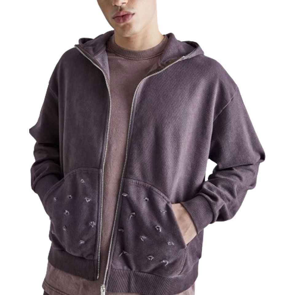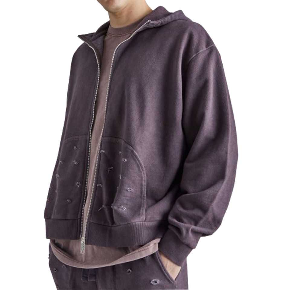 Sudadera con capucha y cremallera desgastada de gran tamaño con diseño elegante único Ropa de calle de alta calidad Sudaderas con cremallera con demanda personalizada Precio bajo