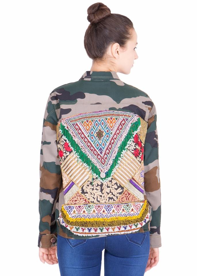 Chaqueta de Mujer Única, Elegante y Moderna, de Mezclilla Transpirable y Ecológica, con Estampado 100% Algodón