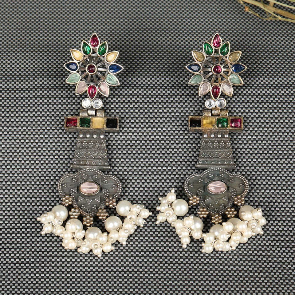 Pendientes Colgantes Únicos con Forma de Torre de Templo Oxidada con Piedras Multicolores, Regalo para Ella