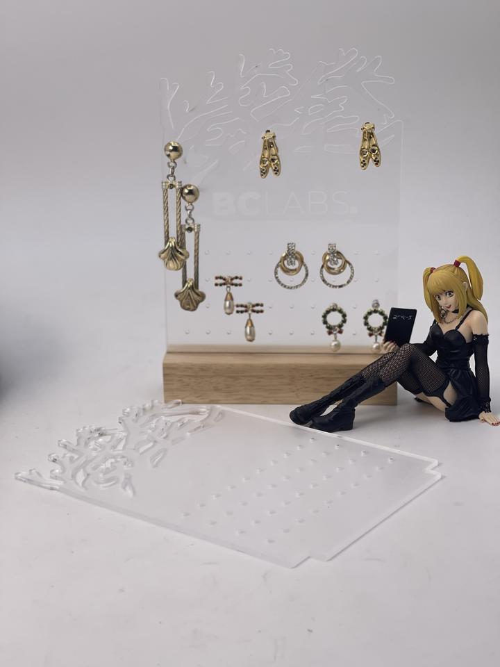 Soporte de Exhibición para Aretes en Forma de REE, de Acrílico con Base de Madera