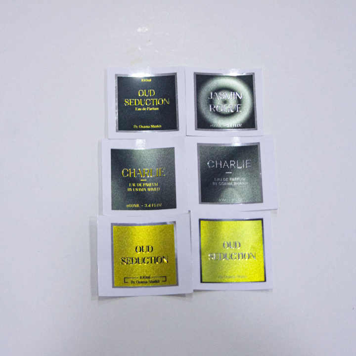 Etiqueta de perfume impermeable en relieve UV para pequeñas empresas, embalaje personalizado único, diseño de logotipo ecológico para productos para el cuidado de la piel