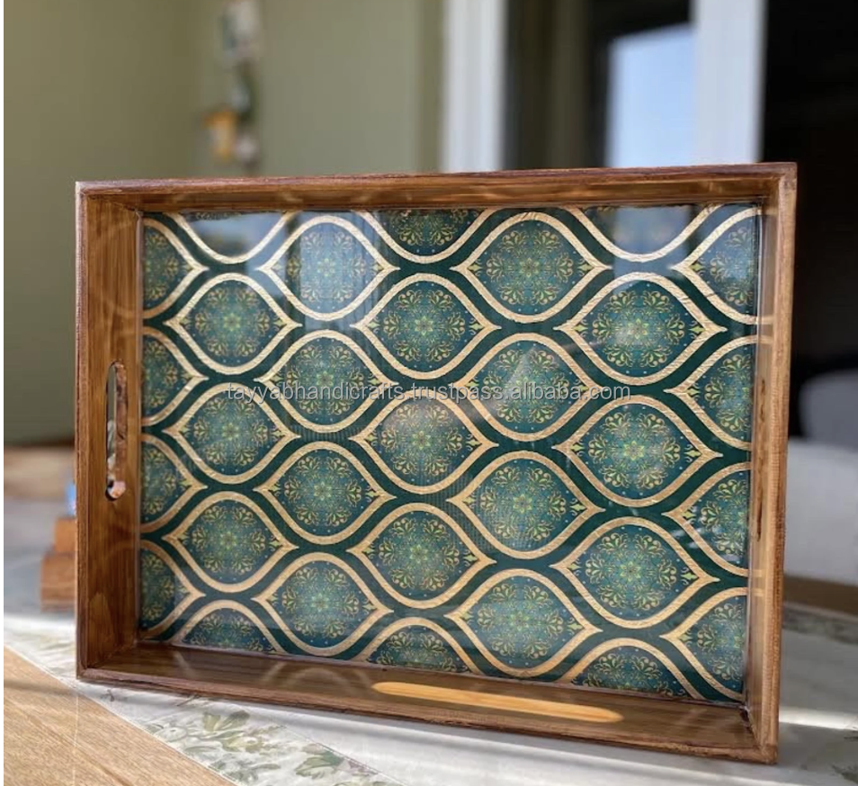 Bandeja de madera única con bandeja de madera de tamaño personalizado para el hogar restaurante Bar Hotel boda hecha por Tayyab Handicraft