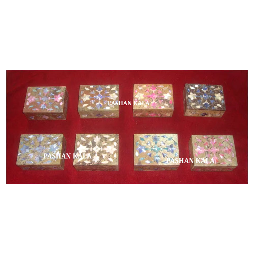 Caja de Almacenamiento de Joyas y Regalo de Forma Rectangular con Incrustaciones de Nácar y Piedra de Savia Natural de Diseño Único y Antiguo