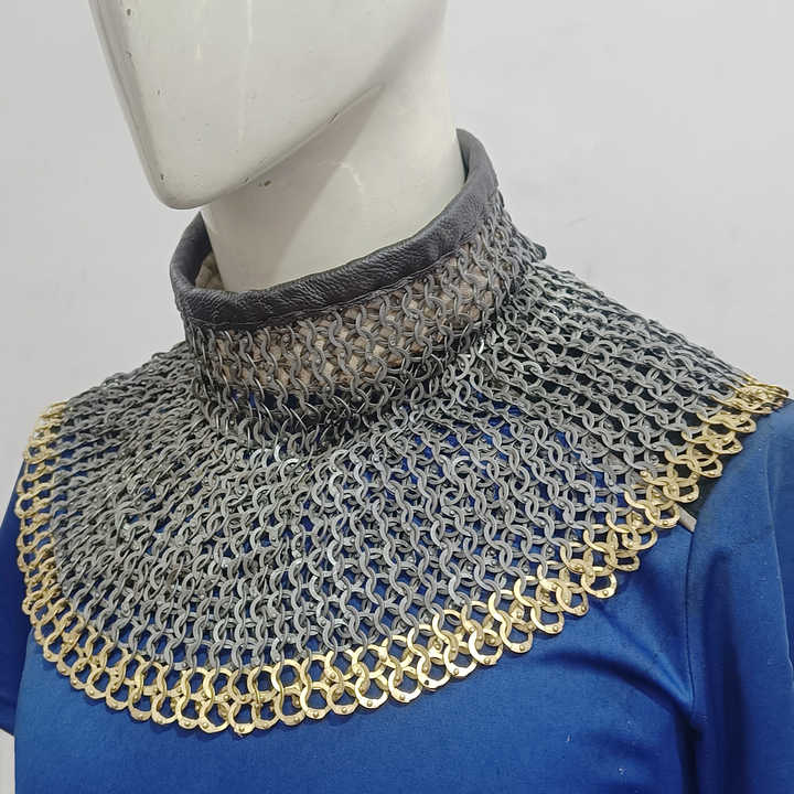 Armadura de cuello de cota de obispo de caballero medieval de diseño único, acero suave y latón para Feria Renacentista con tema de logotipo