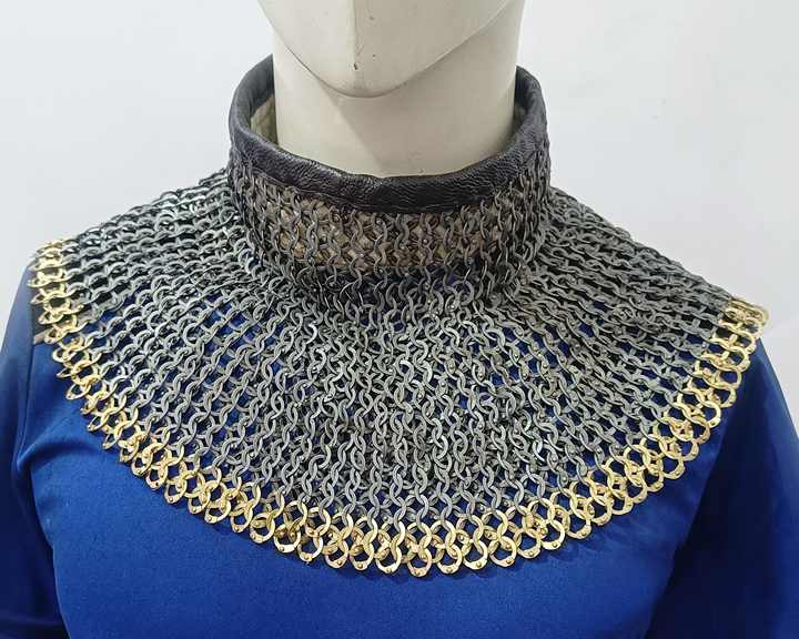 Armadura de cuello de cota de obispo de caballero medieval de diseño único Latón de acero suave para Feria Renacentista con tema de logotipo personalizado
