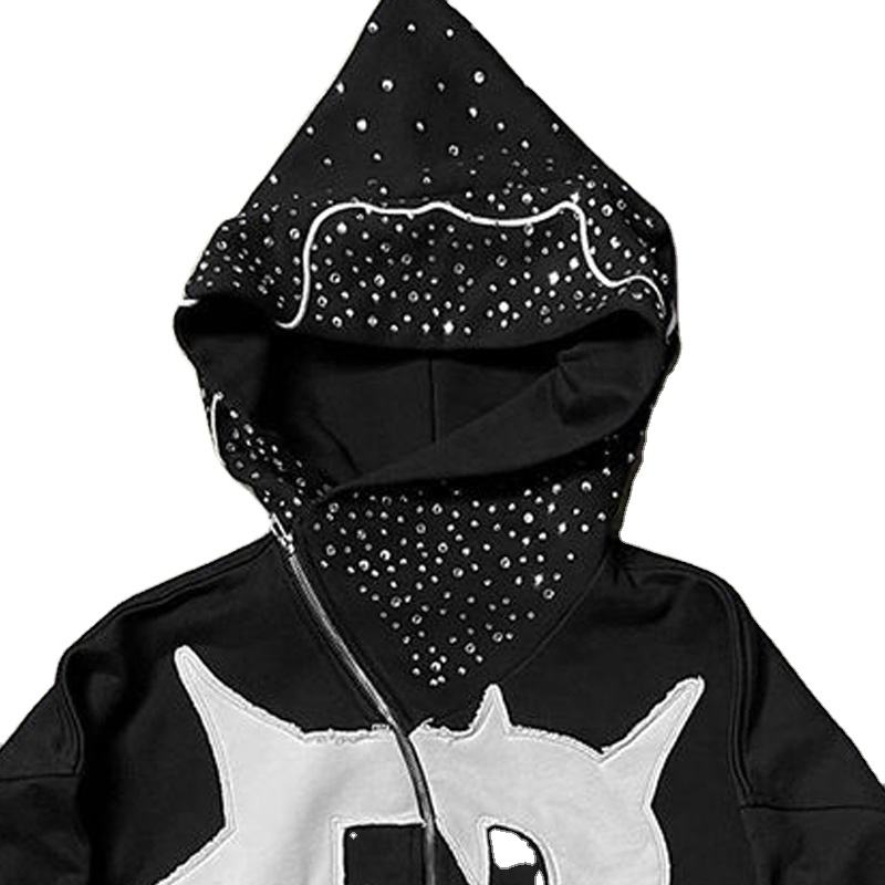Sudadera de invierno de algodón 100% unisex, diseño de cremallera con capucha a la moda y logotipo de diamantes de imitación, estampado sólido, fabricante personalizable