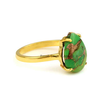 Product Name:Natural Mohave Green Copper Turquoise Sterling Silver Gold Plated Ring