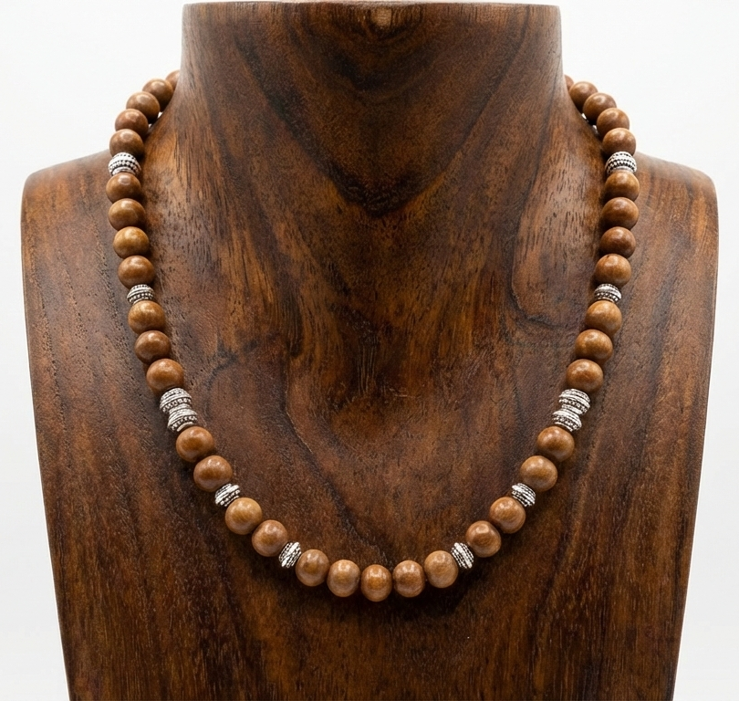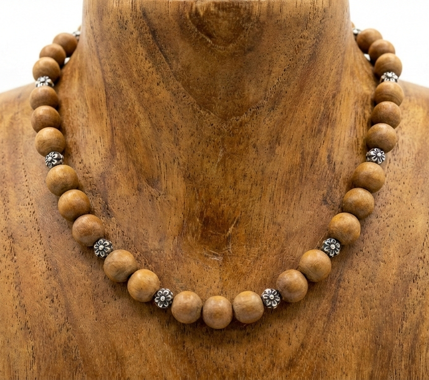 Collar de Cuentas Unisex de 18 Pulgadas, Plata Tibetana de 8mm, Chapado en Oro de 14K, Cierre de Moda, Diseño Geométrico, Hecho a Mano, Certificado por Terceros