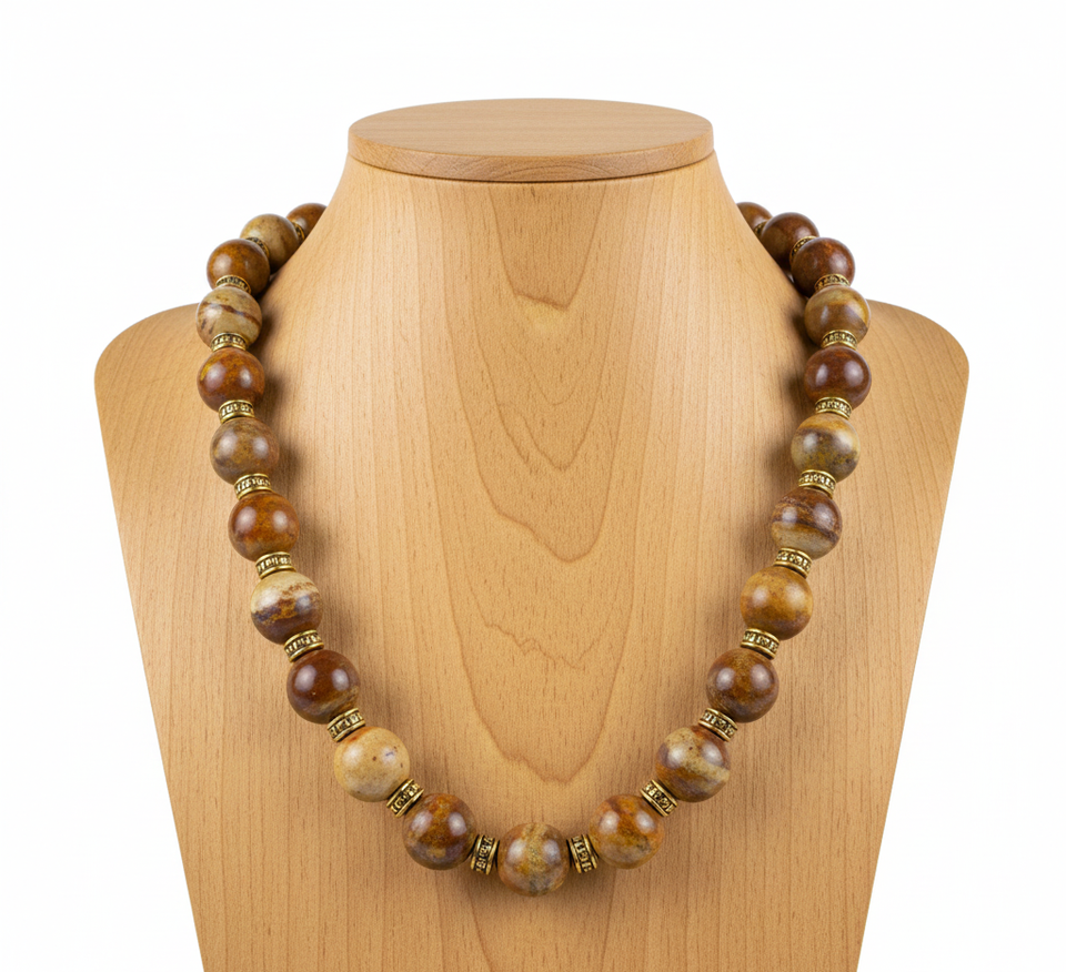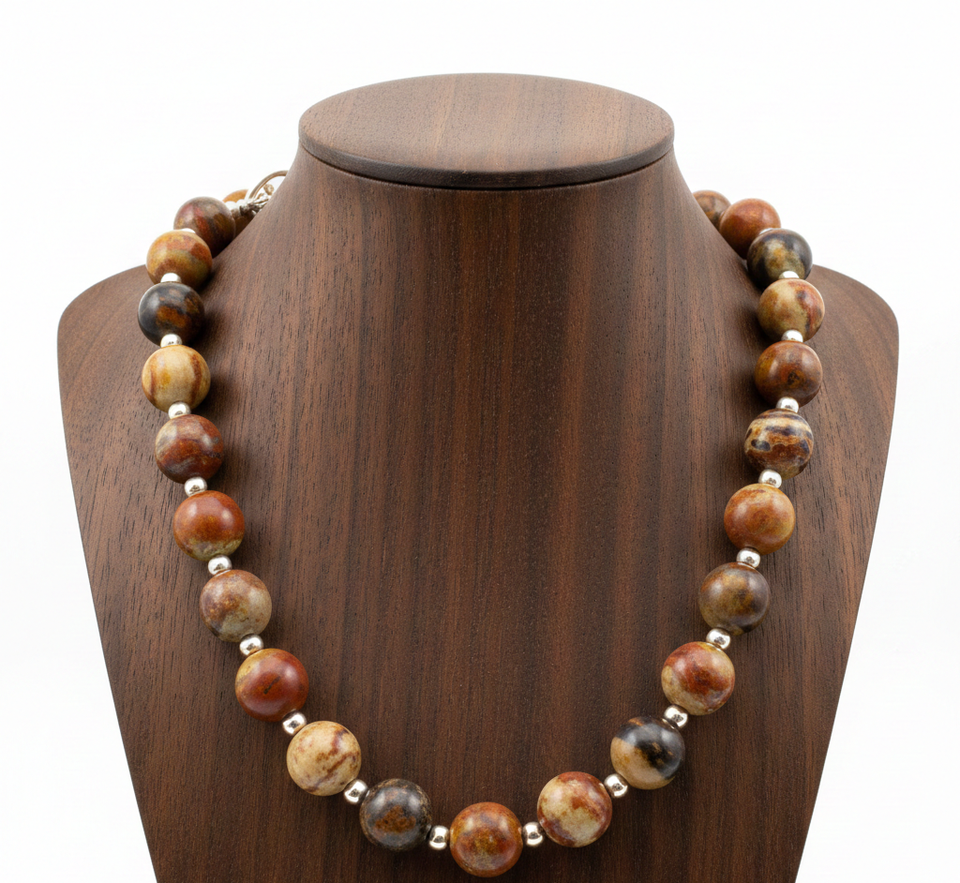 Pulsera y Collar Unisex de 18 Pulgadas con Cuentas de Plata Tibetana, Cristal de Jaspe Natural, Geométrico, Chapado en Rodio, Hecho a Mano, Regalo Moderno