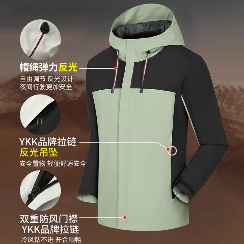 Unisex 3 In 1 Outdoor Jacket Full Sleeve Breathable Water Resistant For Running Cycling Fishing