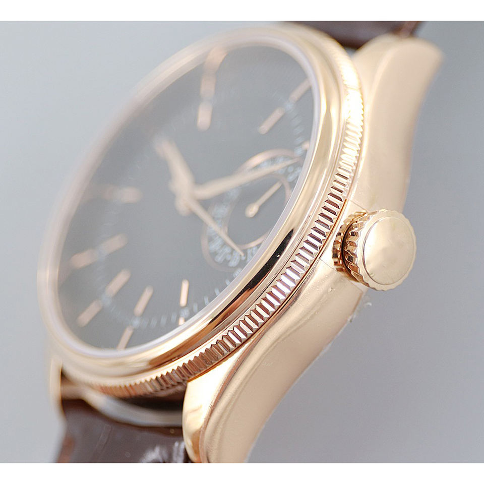 Reloj Mecánico Automático Unisex de Acero 904L, 41mm, Movimiento ETA, Bisel Dorado Minimalista, Esfera Negra, Correa de Cuero, Reserva de Energía, 26mm