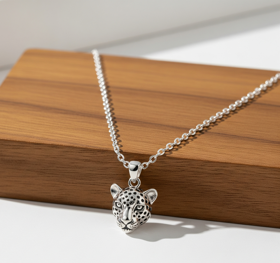 Collar de cadena de eslabones de rodio de plata 925 Unisex con colgante de leopardo chapado en oro uso diario tendencia regalo de moda para hombres y mujeres