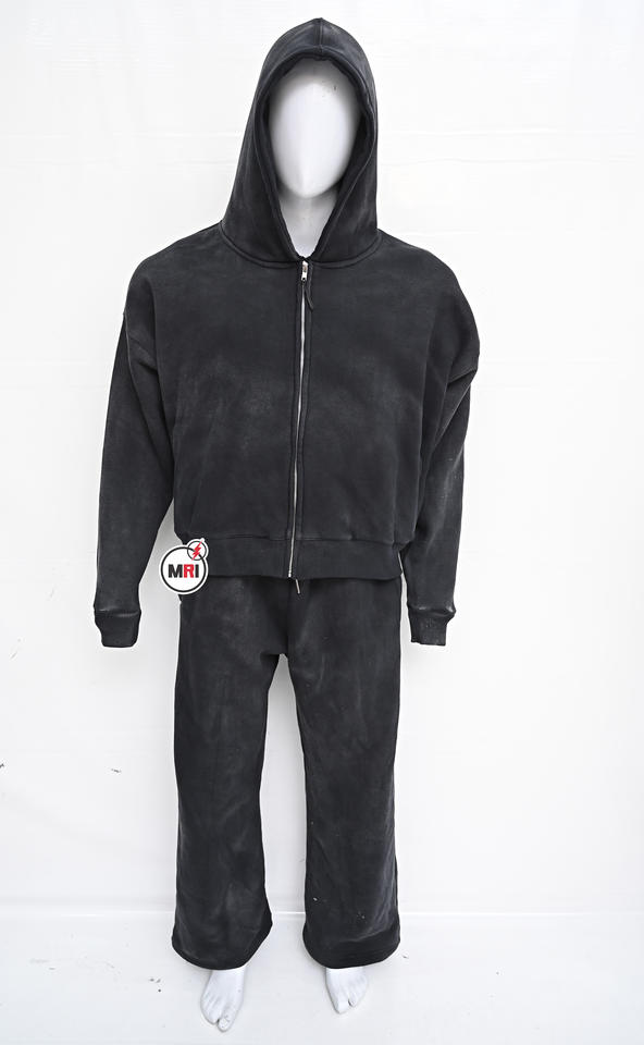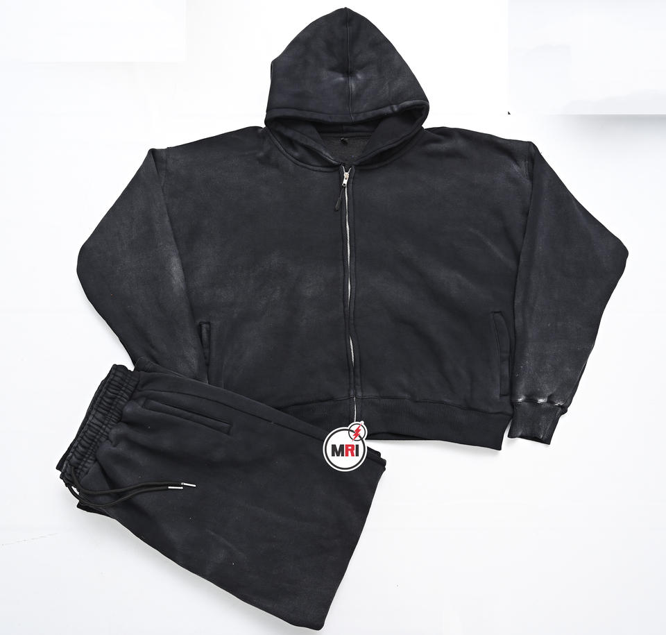 Conjunto de Jogger lavado con ácido unisex, sudadera con capucha y cremallera de algodón 100%, chándal de gimnasio de talla grande XL con hombros caídos de gran tamaño personalizado para invierno