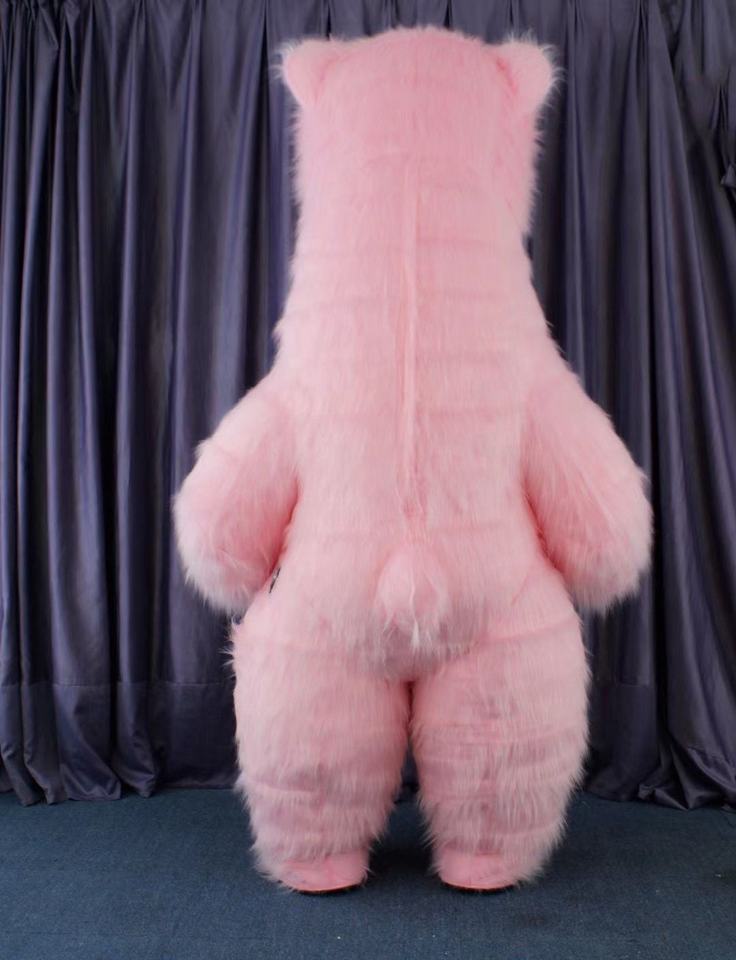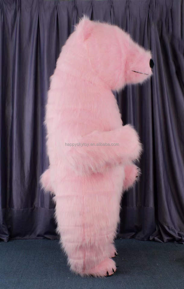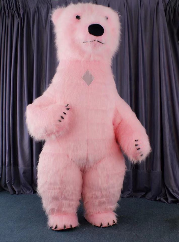 Disfraz de Mascota Inflable de Oso Polar Rosa para Halloween Unisex Adulto Traje de Peluche Blanco Peludo para Fiesta de Carnaval