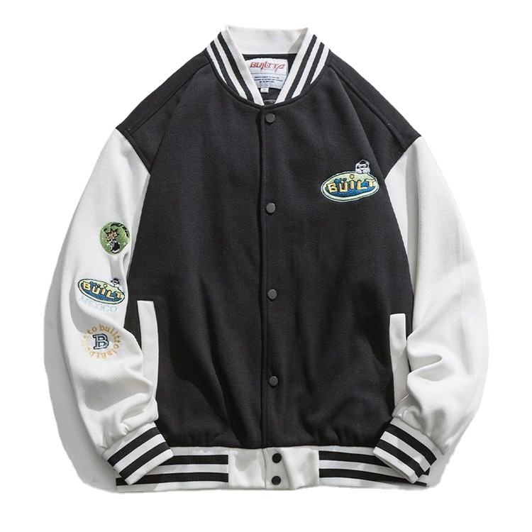 Chaqueta de Béisbol Estilo Americano Unisex, Chaqueta Universitaria con Letras, Cortavientos con Cuello Alto, Diseño Casual al por Mayor para Invierno