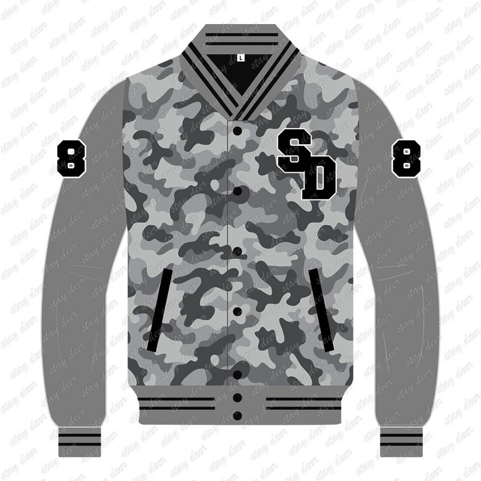 Chaqueta universitaria de satén de camuflaje unisex para hombre, chaqueta bomber con letras bordadas de fábrica y cuello levantado, OEM/ODM