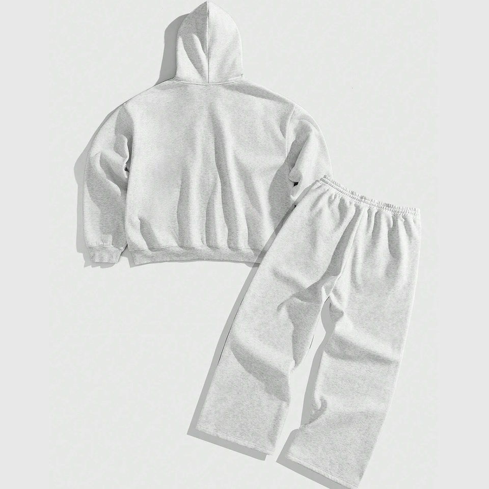 Sudadera con capucha y cremallera informal unisex, conjuntos de pantalones con hombros caídos, logotipo bordado de retazos, talla grande, temporada de invierno, venta al por mayor para