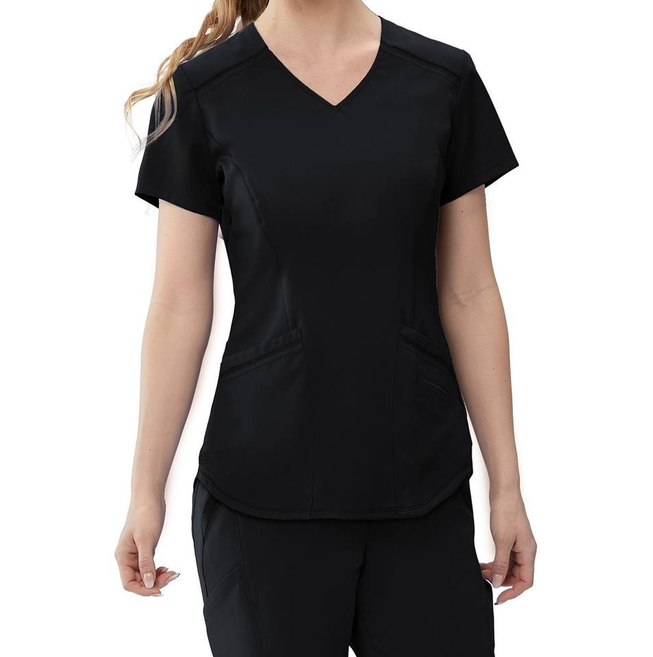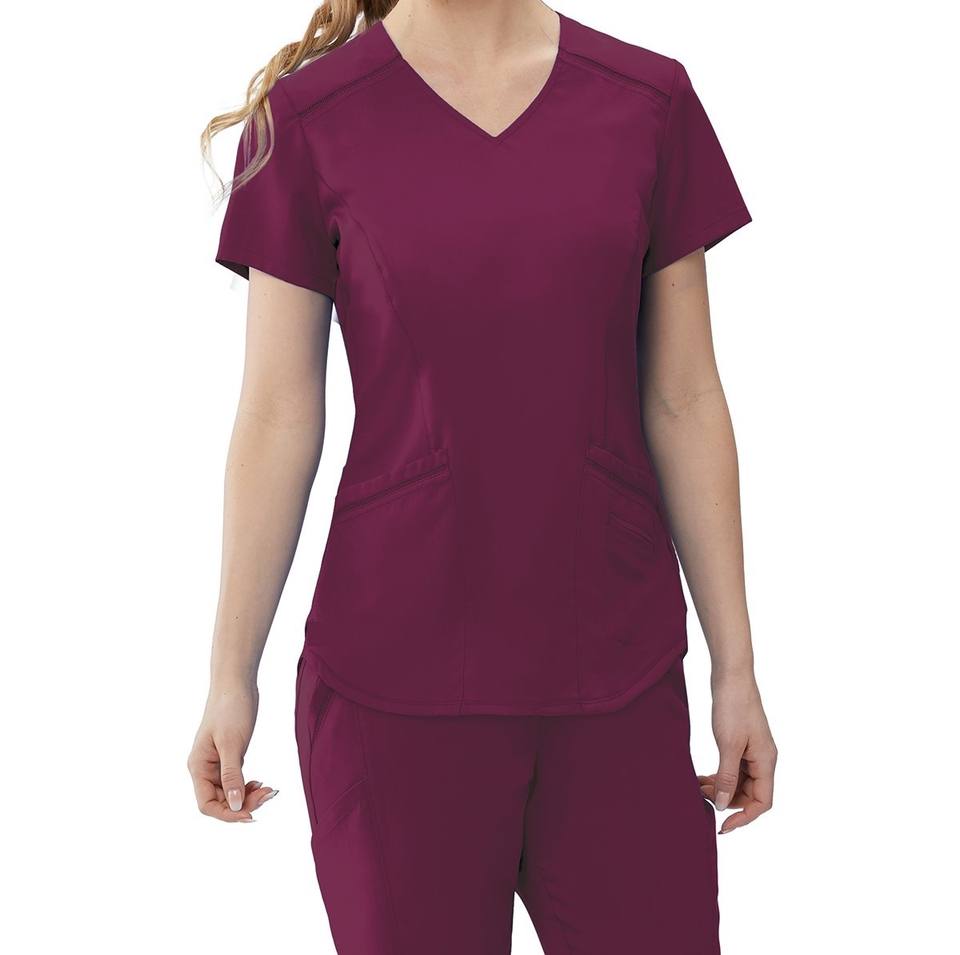 Uniformes de enfermera con cuello en V clásicos unisex, manga corta, patrón elegante, 4 bolsillos, variedad de colores sólidos, Hospital OEM alto