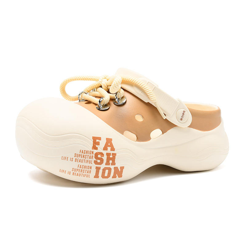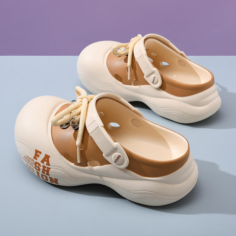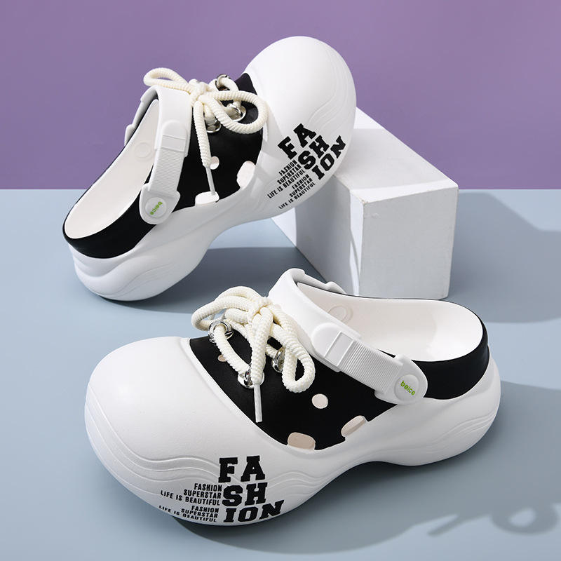Zuecos Unisex de Primavera/Verano con Suela Gruesa, Plataforma Elevada, Antideslizantes, Punta Cerrada, Sandalias de Playa para Exteriores, Blancas y Negras con Cordones