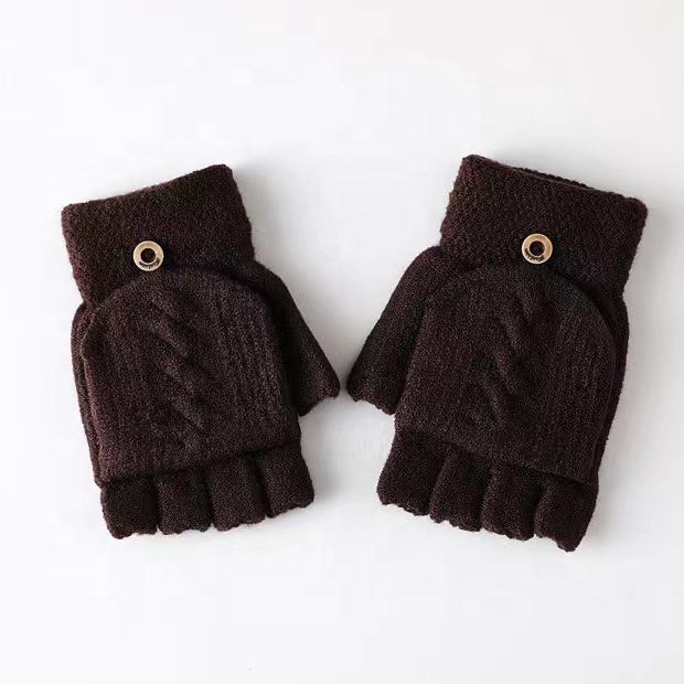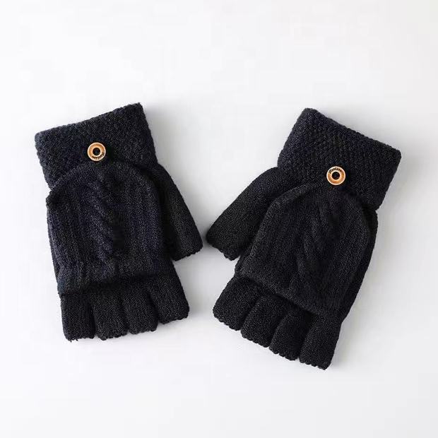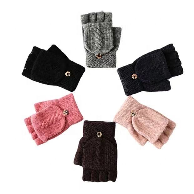 Manoplas convertibles unisex cálidos guantes de pantalla táctil transpirables de punto Jacquard de medio dedo color sólido logotipo personalizado deportes de uso diario