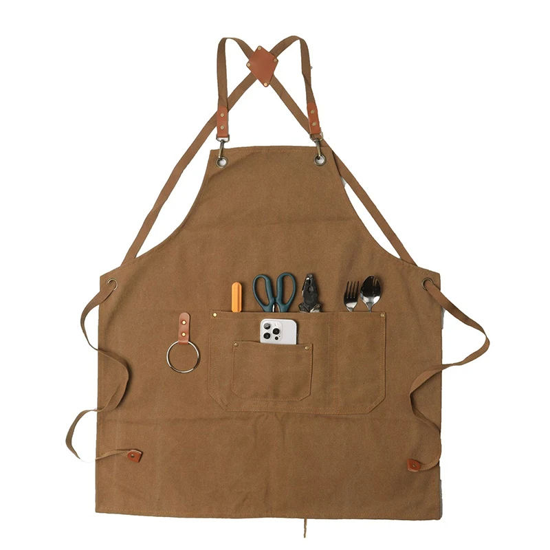 Delantal ajustable de lona de algodón Unisex con bolsillos traseros cruzados para carpintería, arte de jardín, delantal de artista de jardín para carpintería Unisex