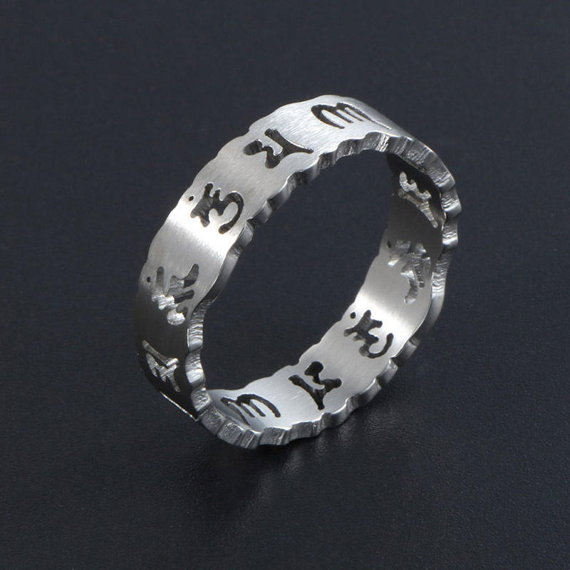 Anillos de Pareja Unisex de Acero de Titanio con Diseño Calado de Mantra de Seis Sílabas para Uso Diario SA835