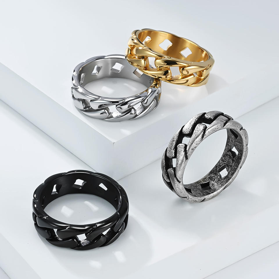 Anillo Unisex de Cadena Cubana, Anillo de Dedo Índice de Acero de Titanio Dorado, Joyería de Estilo Hip Hop Urbano, Regalo