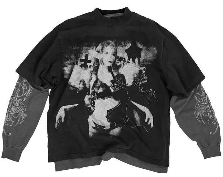 Camiseta 2 en 1 personalizada unisex, Camiseta de punto de manga larga de doble capa, diseño único de gran tamaño 2 en 1 para hombres