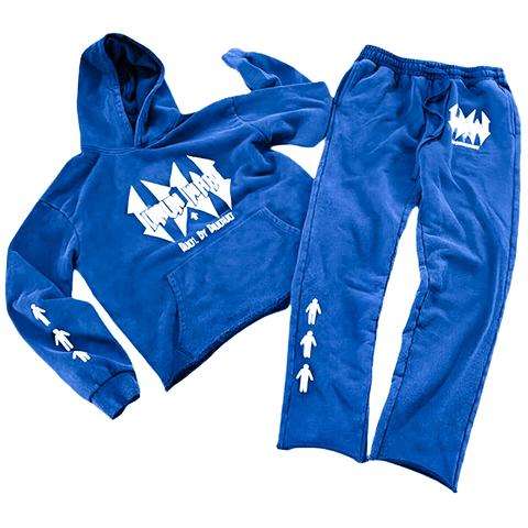 Conjunto de pantalones de chándal acampanados con capucha y lavado ácido desgastado para correr personalizados unisex, chándal en blanco con bordado de algodón de gran tamaño