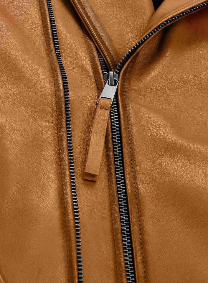 Chaqueta de cuero unisex personalizada con múltiples cremalleras, impermeable, para invierno, estilo motociclista, con cuello alto, elegante, lujosa, de diseño suave y texturizado.