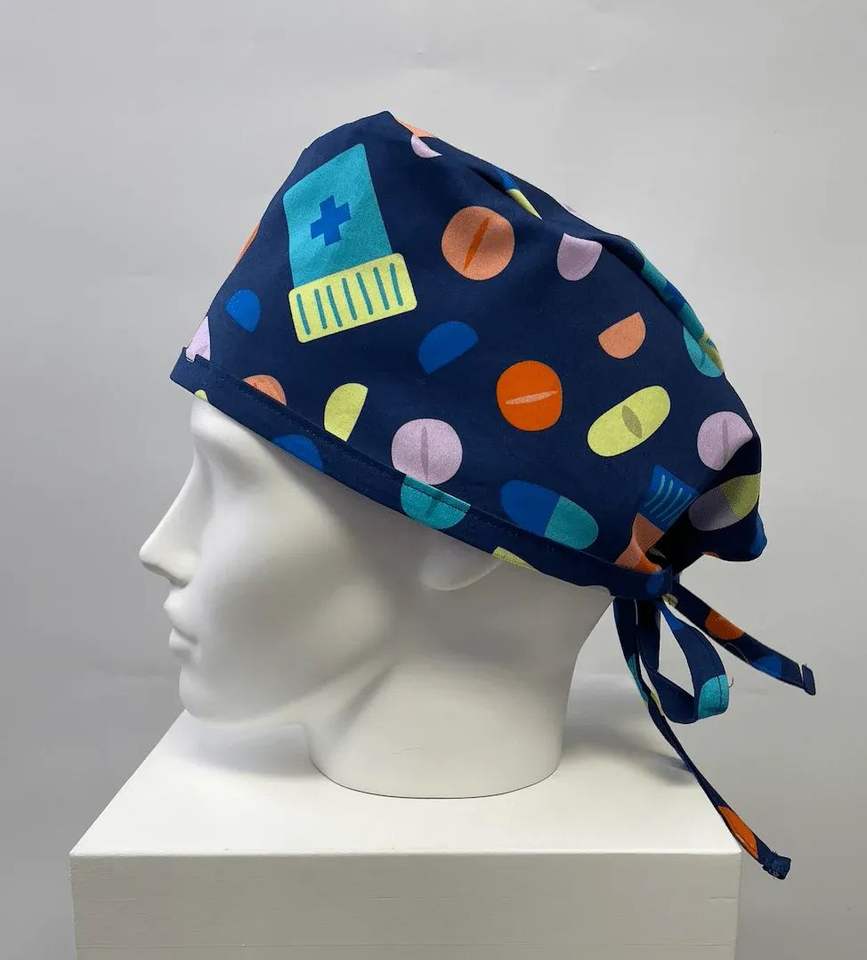 Gorro de fregado con estampado personalizado unisex, algodón, suave al tacto, opción de amarre en la parte posterior, uniformes OEM al por mayor, gorras de fregado de esteticista de tecnología veterinaria