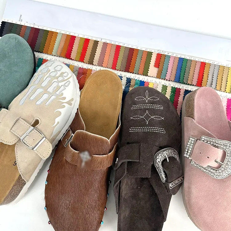 Sandalias planas de cuero de ante de vaca suave personalizadas Unisex, zapatillas de tacón cerrado Birken de corcho para hombres y mujeres, zuecos