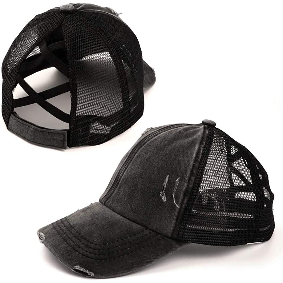 Gorra de béisbol con cola de caballo y moño alto a rayas personalizada Unisex, diseño Snapback a la moda, 70% algodón, 30% poliéster, informal de verano