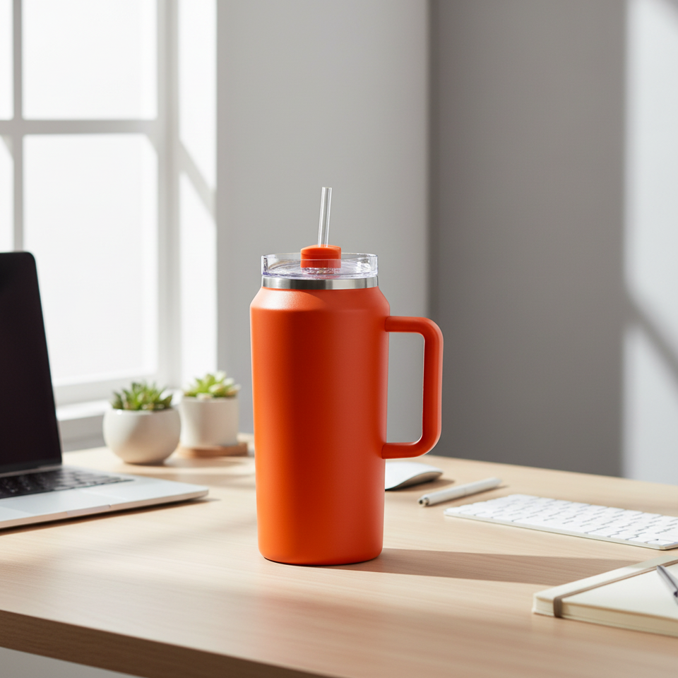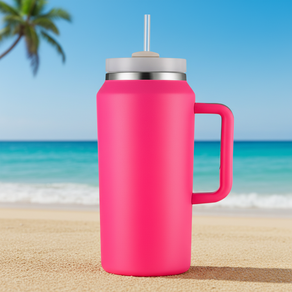 Vaso de acero inoxidable reutilizable de gran capacidad de 64Oz ecológico unisex con taza con mango de paja