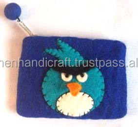 Carteras de lana elegantes unisex diseño de pájaro de fieltro hecho a mano con forro de lana señora estilo producto al por mayor