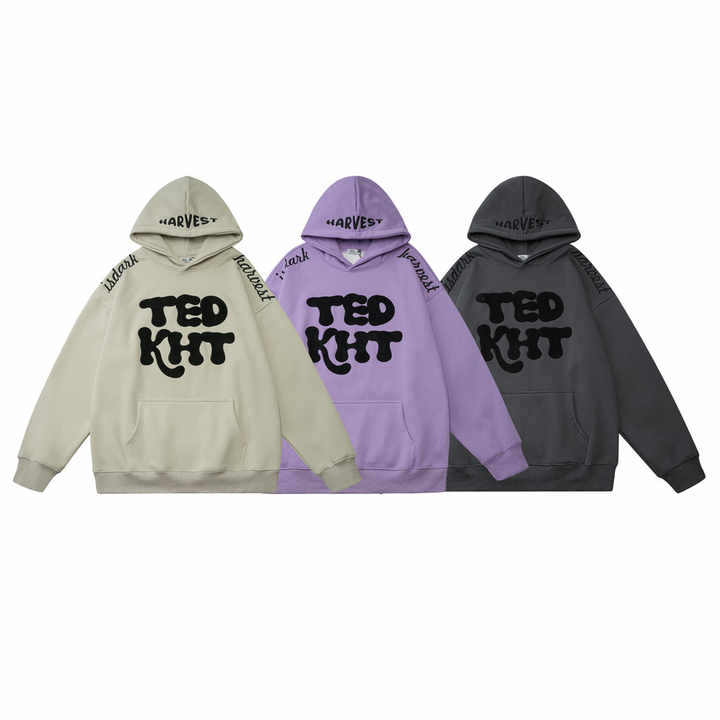Sudadera con capucha bordada unisex Hip Hop Planet impreso Puff Fleece otoño tejido de talla grande sudaderas con capucha para mujer