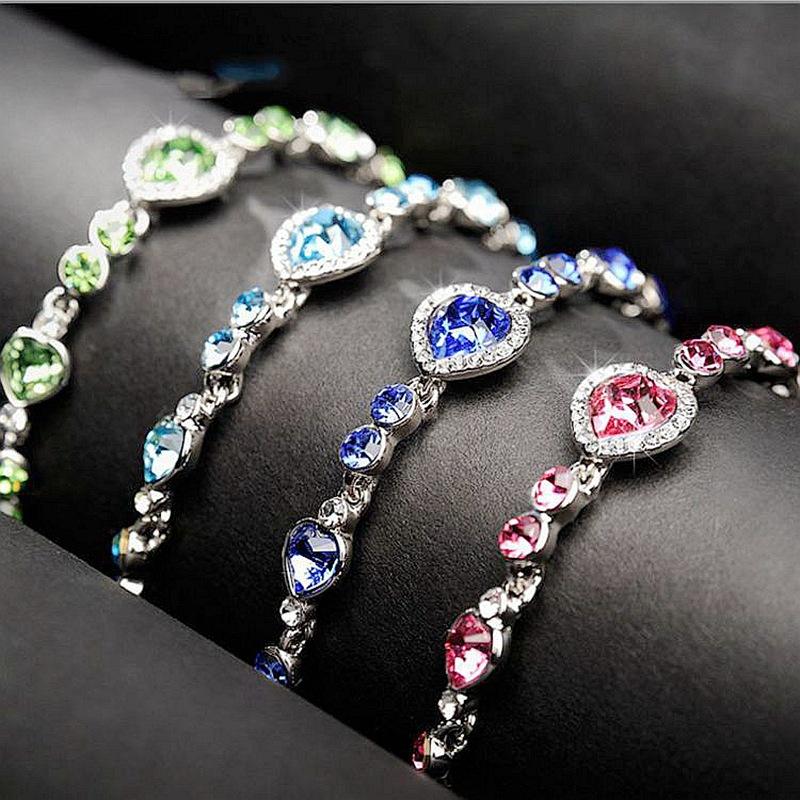 Cadena de acero inoxidable a la moda unisex hueco azul Rosa corazón océano geométrico piedras preciosas regalo color plata
